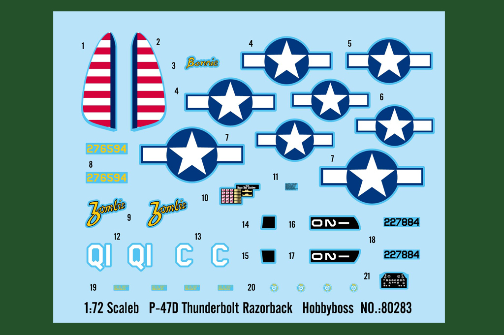 The P-47 was a big (7 Ton) and very powerful high-altitude fighter, commonly called "the Jug". The project started from 1939. And Deliveries started late in 1942. A total of 15683 thisUSfighter aircraft was built in WWII. For early the P-47 Designed as an interceptor, but later it proved to be an outstanding combat plane both in bomber escort and ground attack duty. Its great structural strength and massive radial engine that could withstand damage better than the other plane. P-47D. This model was the major production version, and 6,315 were built. This aircraft was power by a water-injected version of the 2,000hp R-2800 engine, which gave it a top speed of433mphat 30,000 feet. the P-47 models prior to D-25 became known as "Razorbacks."