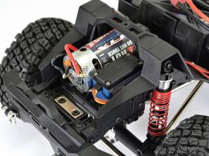 Aluminium CNC shock absorbers are standard front and rear as are dual rated front springs. With the battery pack mounted further forward and the motor and Etronix 15kg servo set directly over the axle, weight bias and climbing ability is greatly improved.