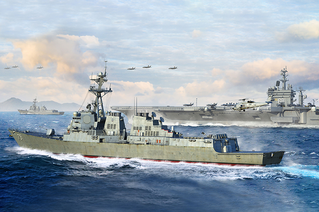 the kit contains over 1300 parts - One-piece hull made from two-directional slide molds - The Deck is split into two parts - 1 SH-60B included - 6 pieces of photo etched frets for handrais?radar parts etc. - Contains display stand |