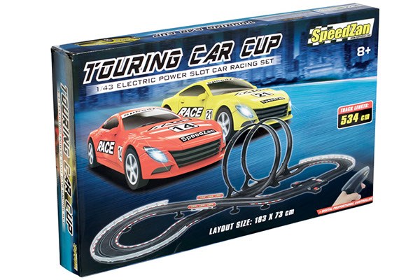 Wanna go loop? The new slot car set TOURING CAR CUP has a bigger track with the dangerous loop. Whom will go thru the loops first? Will it be the driver behind the wheel at the red or yellow car... Go racing with the TOURING CAR CUP from SpeedZan
