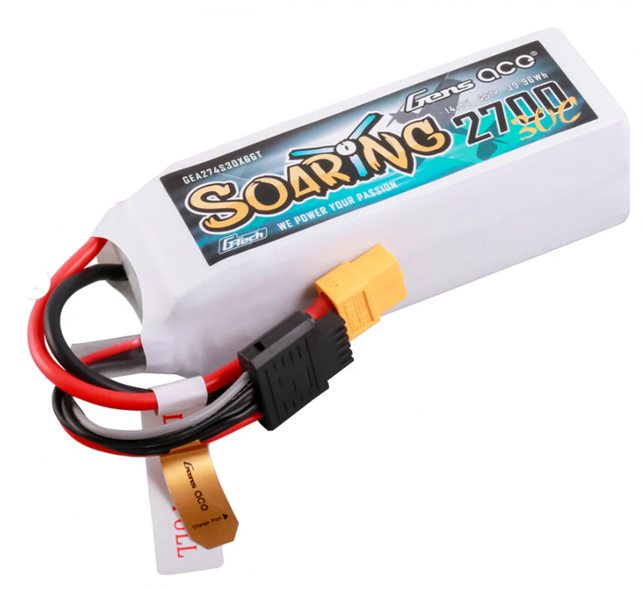 Gens Ace G-Tech Soaring 2700 mAh 4S LiPo on kevyt, energiatehokas ja pitkäikäinen akku, joka on suunniteltu erityisesti purjelennokkeihin ja muihin lennokkeihin, joissa painon ja kapasiteetin suhde on ratkaiseva. Erinomainen valinta harrastajalle, joka haluaa yhdistää pitkän käyttöajan ja G-Tech -helppokäyttöisyyden yhdessä akkupaketissa.