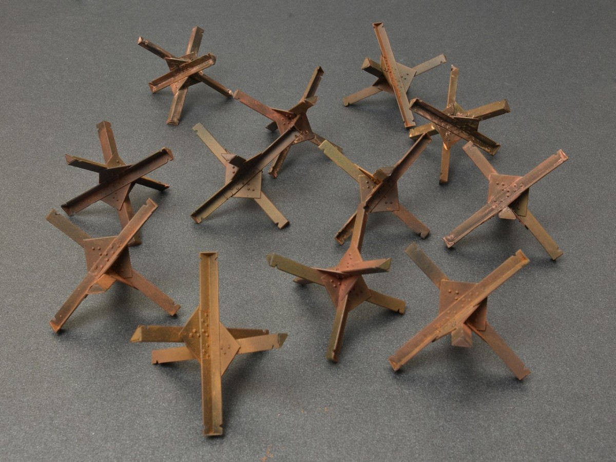Kit contains 36 details for assembling 12 models of Anti-tank Obstacles.