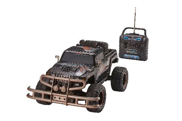 Expect wheel-spinning action on hot tarmac with the new Bull Scout. Off road, the heavy-duty profiled tyres dig into rough terrain powered by the high-performance drive. The easy-to-handle two-channel MHz remote control ensures the 1:10 scale truck keeps full control in any situation. (5 x 1.5V AA batteries and 1 x 9V E block required / not included)