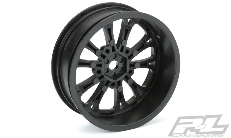 Do you need high-performance and perfectly styled drag wheels for your no-prep SC drag car? Pro-Line has you covered with the all-new Pomona Drag Spec 2.2" Black front Wheels! The Pomona wheels were specifically made for no-prep Drag racing and are a perfect fit with Pro-Line's Hoosier Drag 2.2" Front Tires! The Pomona wheels are strong and lightweight 12mm hex wheels making them the ideal choice for performance drag racing. The wheel spoke design mimics what you would find at the Pomona Drag Strip on any given race weekend and will complete the look of your build. The Pomona wheel offset is ideal for 2wd Slash® trucks converted to no-prep Drag Racing cars. Launch your no-prep Dragster to the next level with the Pro-Line Pomona Drag Spec Wheels today!