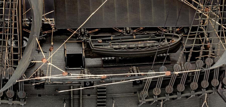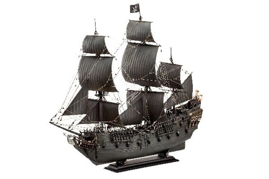 A model construction kit of the legendary "Black Pearl" the ship commanded by Captain Jack Sparrow in the film series PIRATES OF THE CARIBBEAN. In the fifth part "SALAZAR'S REVENGE