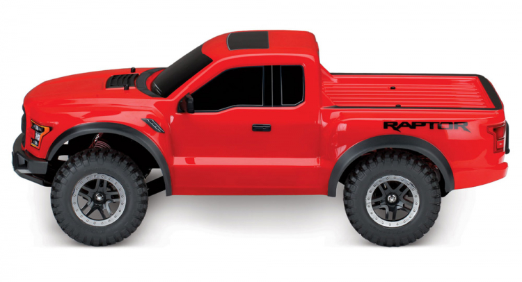 2017 Ford Raptorin RC-painos Traxxaksen Slashiin pohjautuvana vie sinut sinne missä hiekka pöllyää ja hyppyrit odottavat kuumina - tyylikkään ulkonäön siivittämänä! Kori sisältää paljon hienoja yksityiskohtia, kuten ruiskuvalettu etusäleikkö ja puskuri. Ilmanottoaukot ja sivupeilit viimeistelevät tämän Fordin ulkonäön.