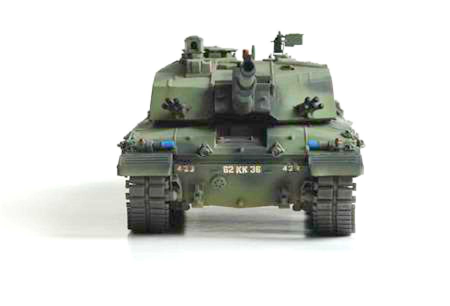 Further development of the Challenger 1 by Vickers Defence Systems resulted in the Challenger 2 MBT, of which 386 have been ordered by the British Army, with deliveries running from 1994 through to 2,000. Oman has ordered 18 Challenger 2 MBTs. With the introduction of Challenger 2, all remaining Chieftain and Challenger 1 MBTs will be phased out of service with the British Army. Although similar in appearance to Challenger 1, the Challenger 2 MBT has many improvements including a brand new turret armed with the latest 120mm L30 rifled tank gun firing a new APFSDS-T (Armour Piercing Fin Discarding Sabot Tracer) projectile with a depleted uranium penetrator. The new computerized fire control system, all electric gun control and stabilizing system, and stabilized sights for the commander and gunner give a high degree of first round hit probability under both day and night conditions. Standard equipment includes a thermal camera over the manlet of the 120mm gun which provides a picture for gunner and commander, as well as an NBC (Nuclear, Biological, Chemical) system, mounting points for additional fuel drums at the rear, and mounting points for a Combat Dozer Blade at the front of the hull.